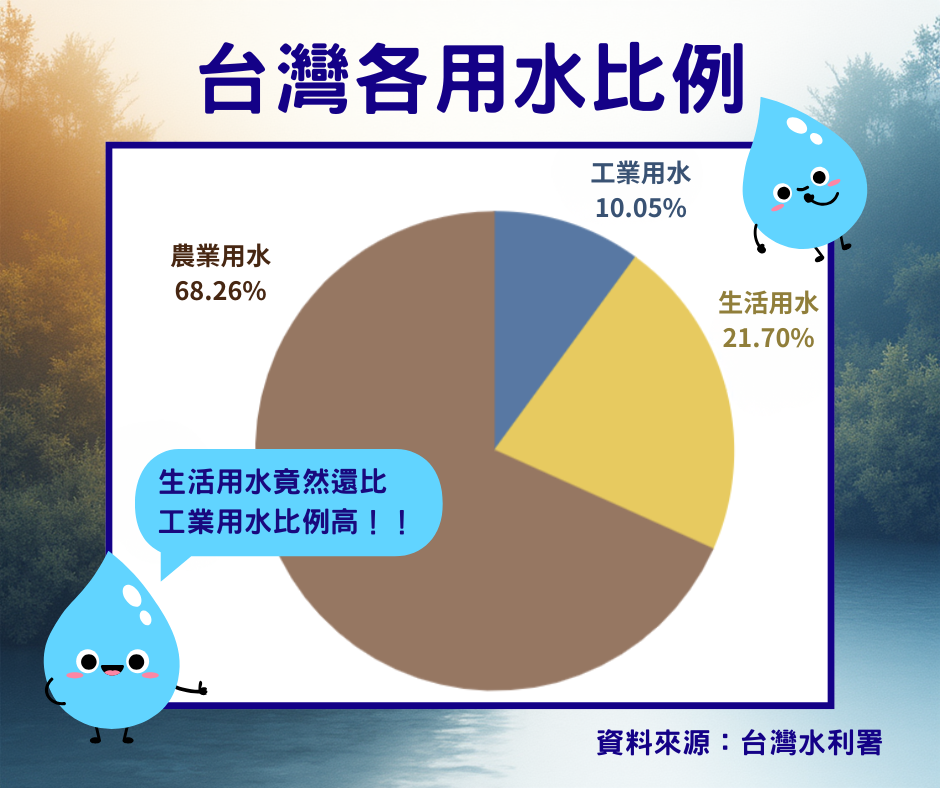 其實台灣三大用水類別的佔比不是大家想的很平均😲