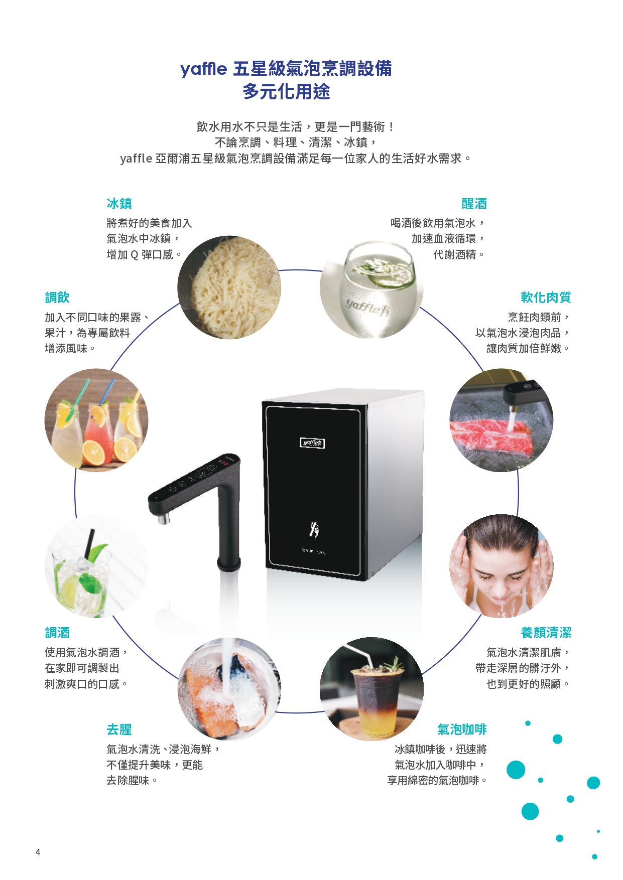 氣泡烹調設備主機、觸控式四溫龍頭、兩道式淨水設備、熱飲機CH-8001、6公升氣瓶