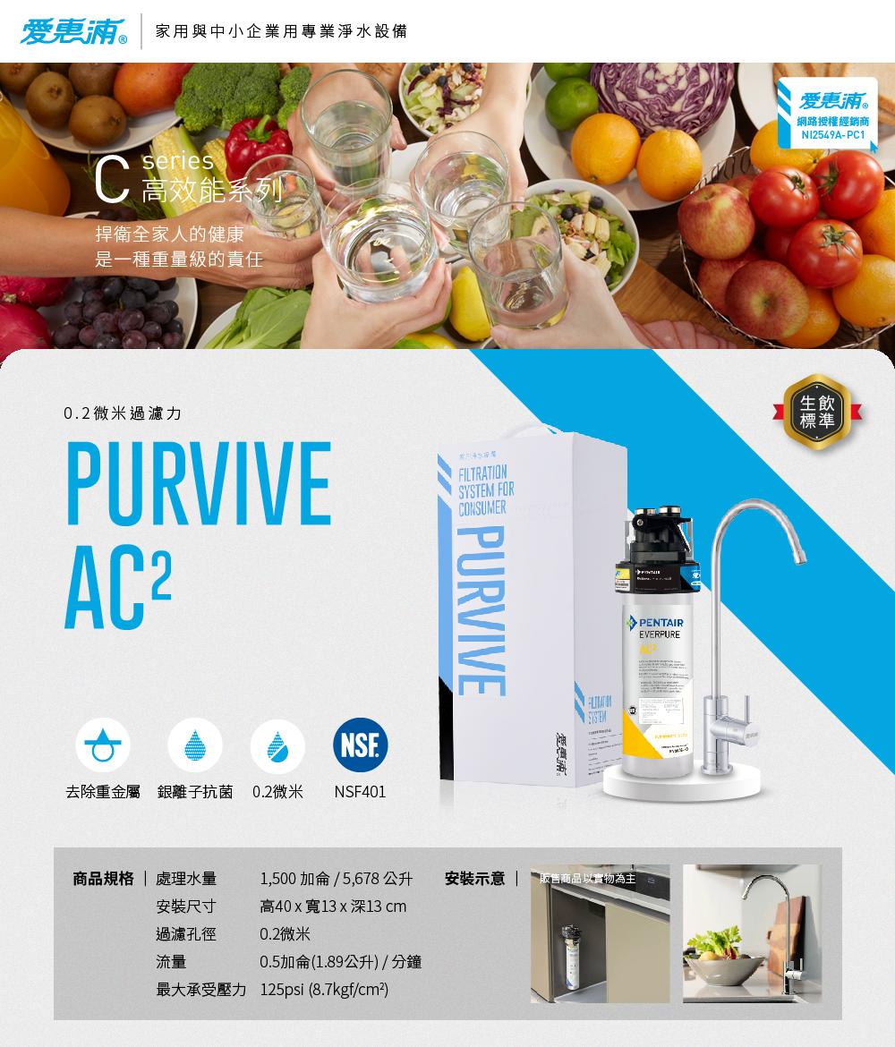 【愛惠浦】櫥下型 PURVIVE-AC2無鉛龍頭生飲淨水器