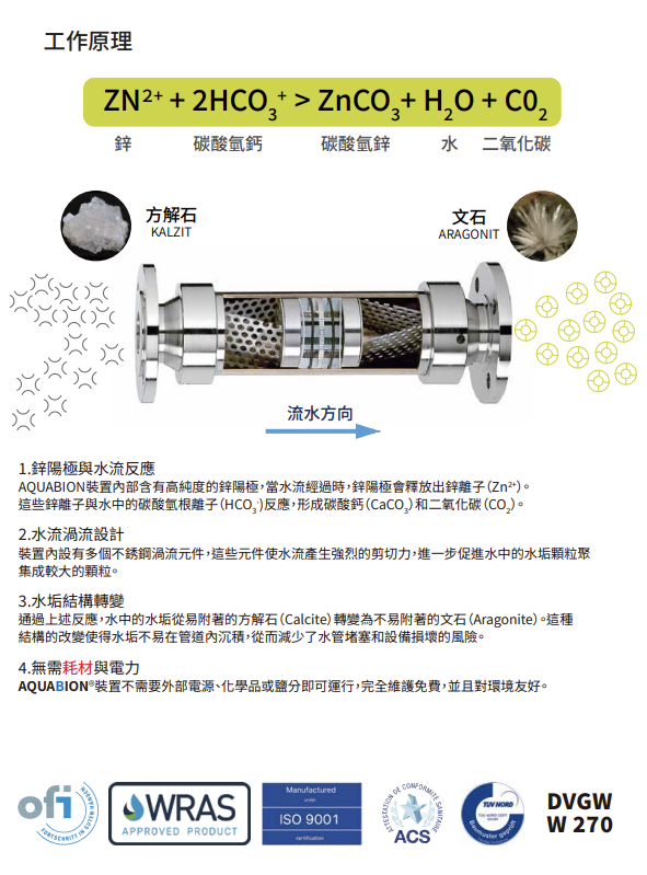 AQUABION® 水垢抑制器 零耗材非化學性輕鬆解決水垢問題 德國的天然氣和水協會DVGW W270 測試和認證 ACS法國飲用水設備標準 OFI-CERT奧地利飲用水標準 歡迎加入官方LINE詢問 FB粉絲專頁私訊或02-6616-5607來電洽詢 我們會提供您最適配的方案