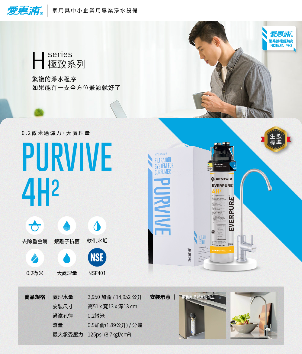 【愛惠浦】櫥下型 PURVIVE-4H2無鉛龍頭生飲淨水器