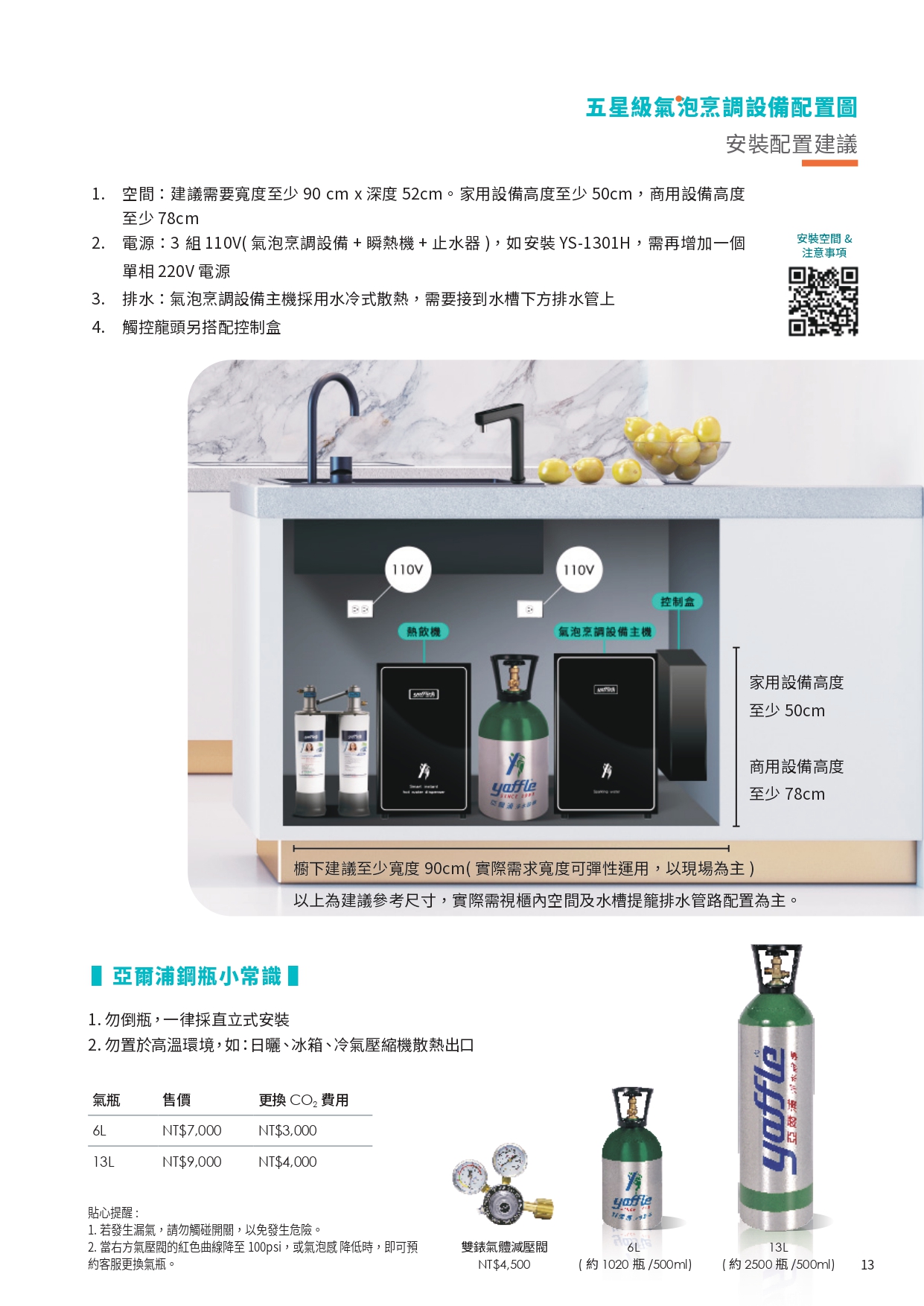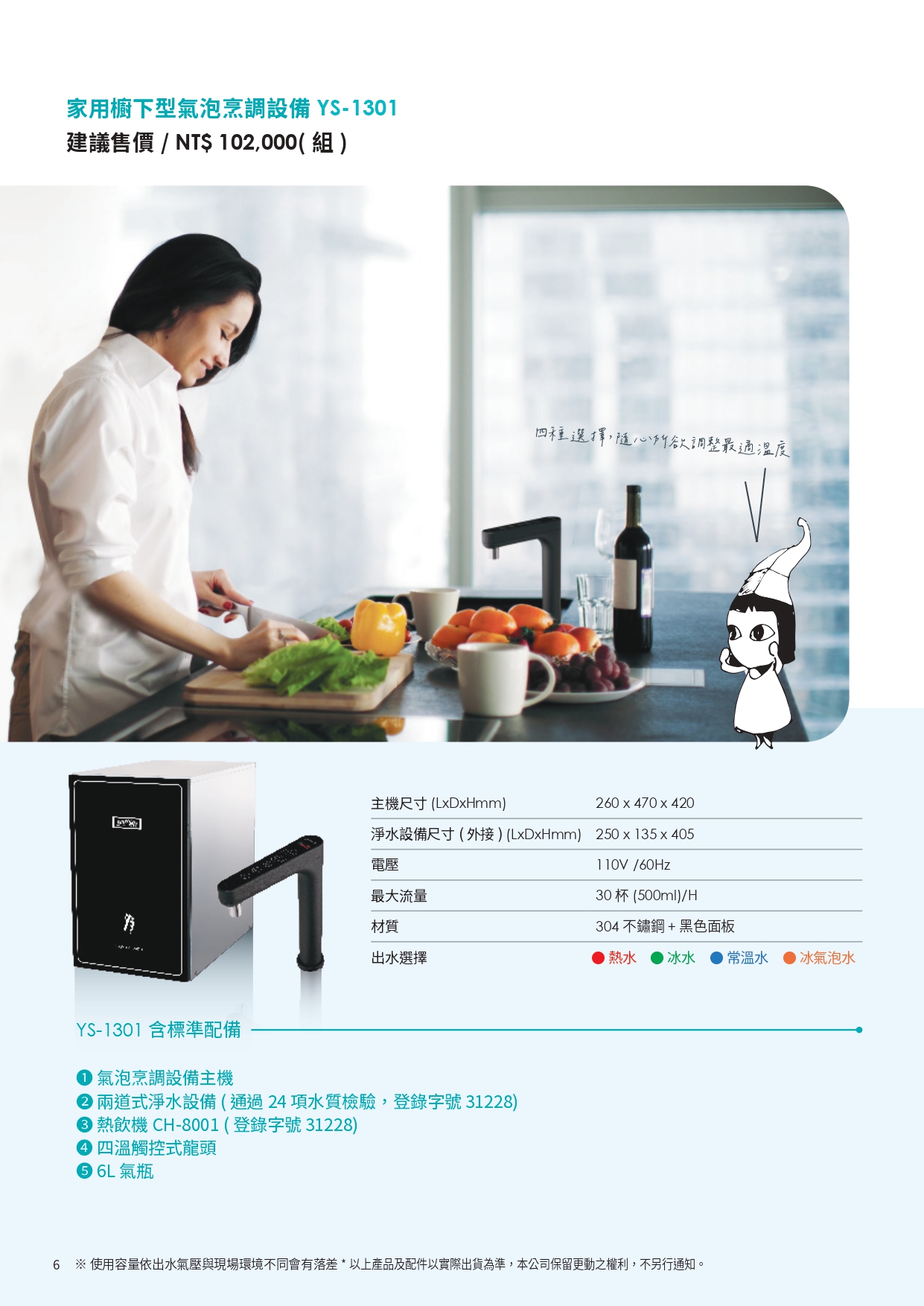 氣泡烹調設備主機、觸控式四溫龍頭、兩道式淨水設備、熱飲機CH-8001、6公升氣瓶